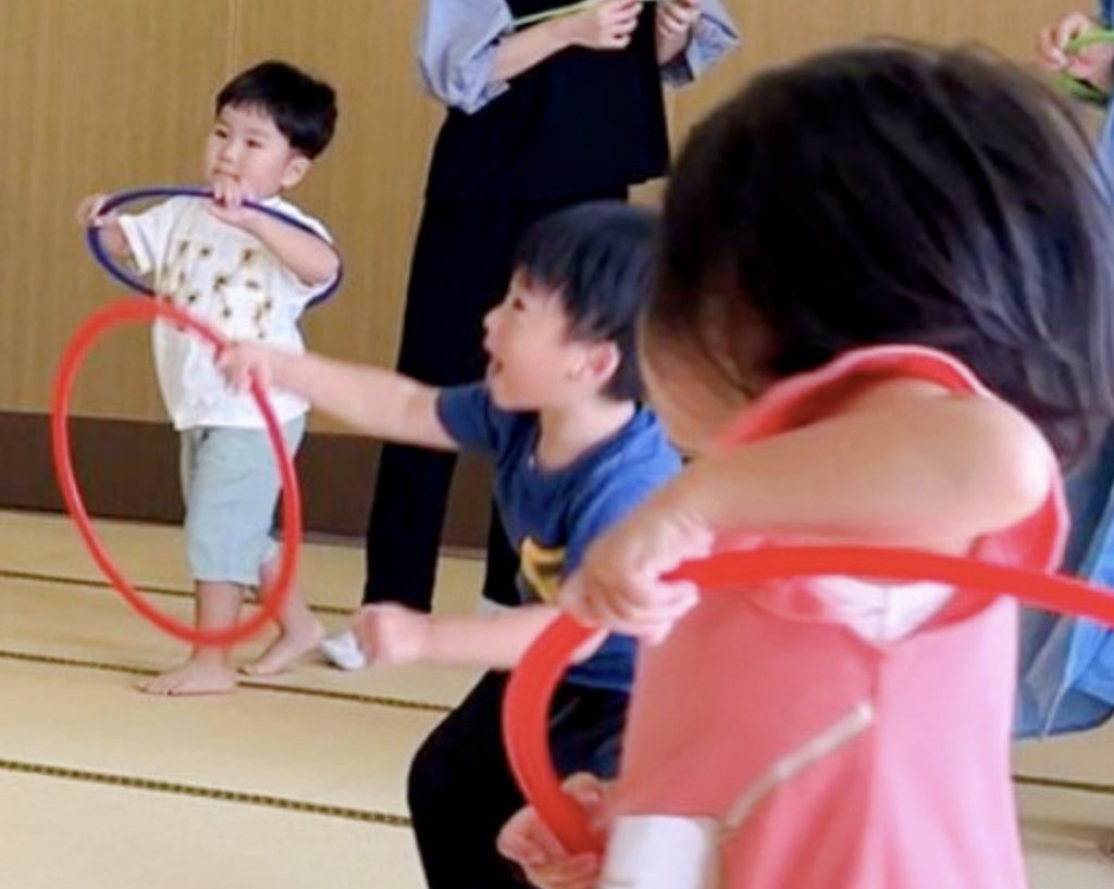 今までは泣き確定でしたので、いつも端っこの立ち位置で、先生に宥められながらでしたが、今年はセンターでニコニコしている姿を見て、リトミックに入って良かったな~と感じました。